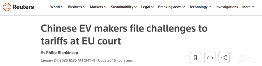▲路透社报道比亚迪、吉利和上汽集团已在欧盟法院提起诉讼